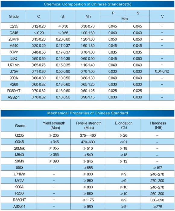 Thành phần cấu tạo của từng loại thép ray: