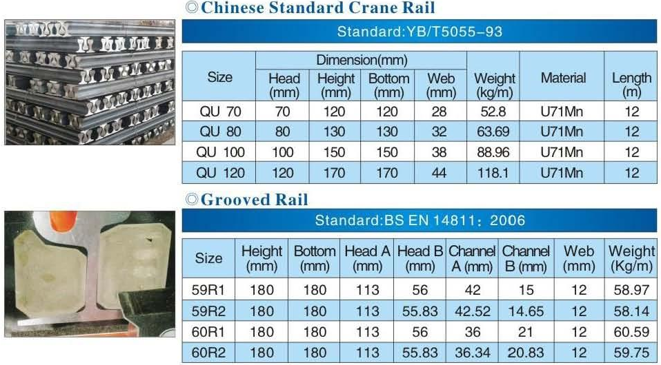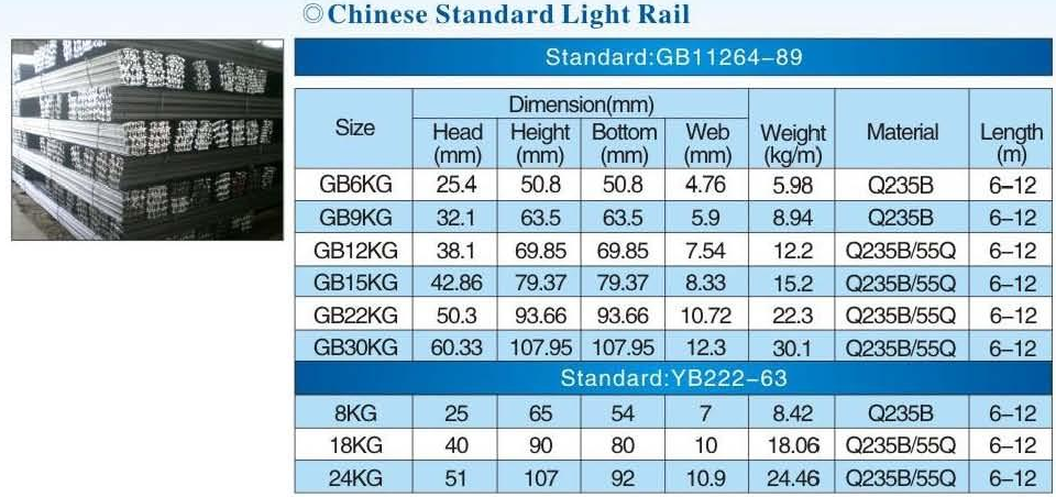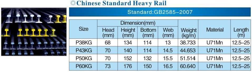 Thông số kỹ thuật của từng loại thép ray: