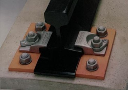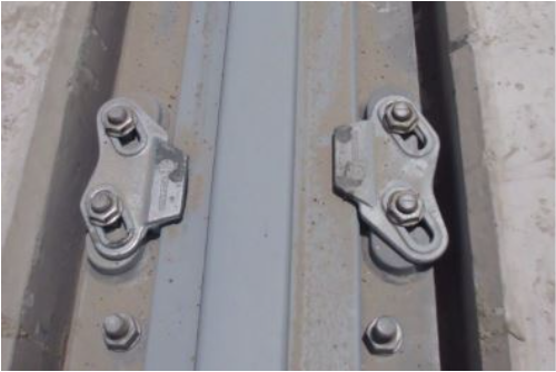 Kẹp được cố định vào đường ray bằng các bu-lông được luồn qua các lỗ được làm trong giá đỡ bằng thép