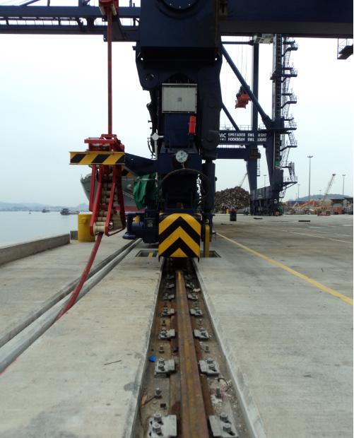 Phải có trụ chắn ở hai đầu và cuối của đường ray để ngừa hiện tượng máy trục trượt khỏi ray. Trụ chấn phải chắc chắn và có độ đàn hồi bằng cao su hoặc gỗ ở chỗ tiếp xúc với máy trục. giữa các thanh ray phải được nối với nhau bằng cách hàn dây dẫn và nối vào ray, đồng thời nối ray với hệ tiếp điện.