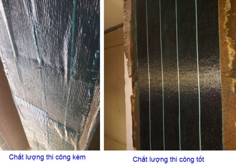 - Áp dụng quy phạm: Hiện nay, quy phạm ACI 440.2R-08 của Mỹ về hướng dẫn thiết kế và thi công FRP và quy phạm ASTM D-3039 hướng dẫn phương pháp thí nghiệm vật liệu FRP đang được các nhà thầu thi công sử dụng phổ biến.