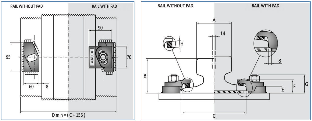 Được sử dụng cho đường ray A55, đường ray A65, đường ray A75, đường ray A100, đường ray S30, đường ray S33, đường ray S41, đường ray S49, đường ray JIS37, đường ray ASCE80, đường ray ASCE85, đường ray UIC54, .... Kích thước đường ray khác tùy theo theo yêu cầu của bạn.