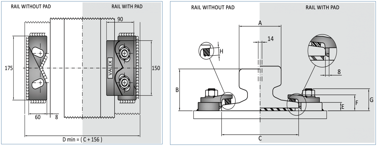 Được sử dụng cho đường ray A55, đường ray A65, đường ray A75, đường ray A100, đường ray S30, đường ray S33, đường ray S41, đường ray S49, đường ray JIS37, đường ray ASCE80, đường ray ASCE85, đường ray UIC54, .... Kích thước đường ray khác tùy theo theo yêu cầu của bạn.