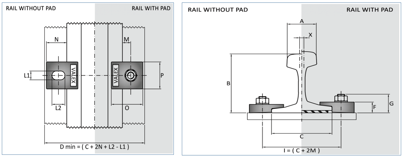 Được sử dụng cho đường ray A55, đường ray A65, đường ray A75, đường ray A100, đường ray S30, đường ray S33, đường ray S41, đường ray S49, đường ray JIS37, đường ray ASCE80, đường ray ASCE85, đường ray UIC54, .... Kích thước đường ray khác tùy theo theo yêu cầu của bạn.