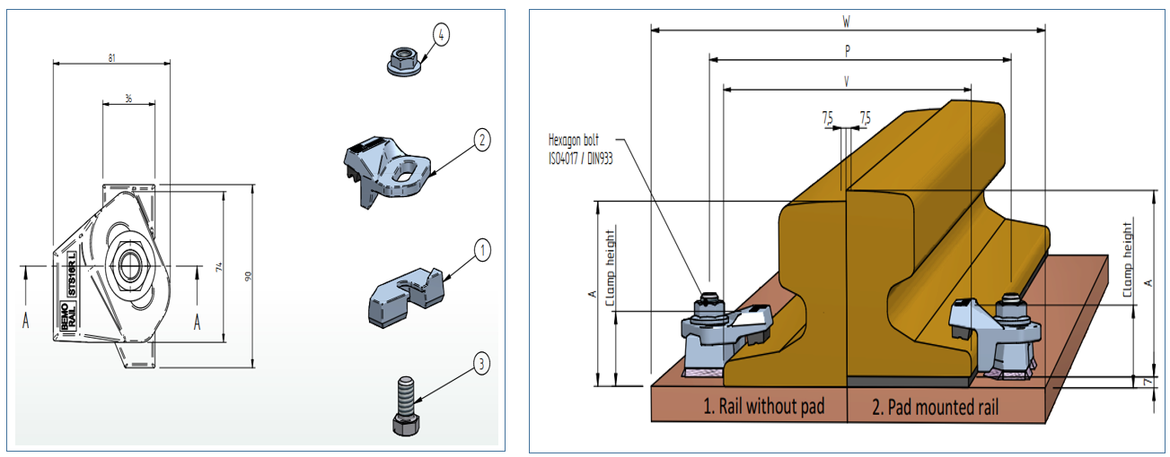 Được sử dụng cho đường ray QU70, đường ray QU80, đường ray A55, đường ray A65, đường ray A75, đường ray A100, đường ray S30, đường ray S33, đường ray S41, đường ray S49, đường ray JIS37, đường ray ASCE80, đường ray ASCE85, đường ray UIC54, .... Kích thước đường ray khác tùy theo theo yêu cầu của bạn.